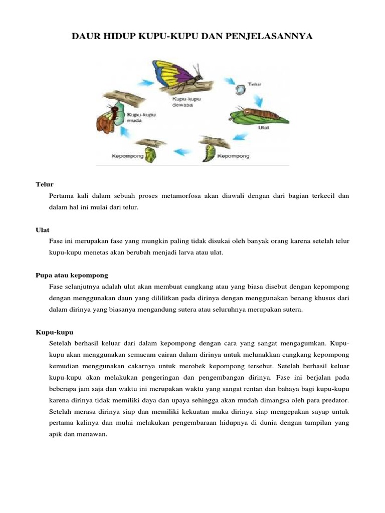 Perbedaan daur hidup kupu kupu dan belalang, kamu tahu? Prosesnya ternyata cukup panjang dan melewati banyak tahapan, lo. Cermati yuk penjelasan lengkapnya pada artikel berikut ini! Artikel ini sudah direview oleh: Sebenarnya, bagaimana sih daur hidup kupu kupu? Kupu kupu memiliki ciri khusus, apabila sedang hinggap di daun atau tempat lainnya ia selalu membentangkan sayap indahnya. Ulat memakan daundaunan sehingga tubuhnya menjadi besar. 6 likes · 1 talking about this. Sebelum membahas lebih lanjut, apa itu daur hidup? Baca penjelasan diatas, kemudian tulis rangkuman menggunakan bahasa. Dari telur kemudian menetas berubah jadi ulat. Seperti mahluk hidup, organisasi dapat dibayangkan mengalami proses. Manfaat zat gizi bagi wanita dalam daur hidup.